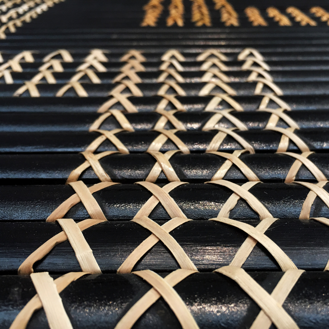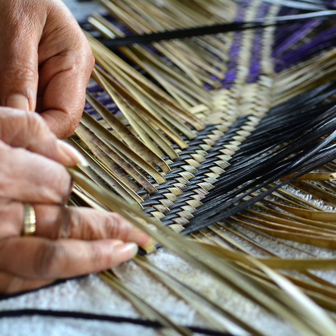 Tukutuku are the decorative wall panels that were once part of the traditional wall construction used inside meeting houses. The making of the panels is a significant social event and the weavers work in pairs from either side, passing the strand of harakeke to one another.